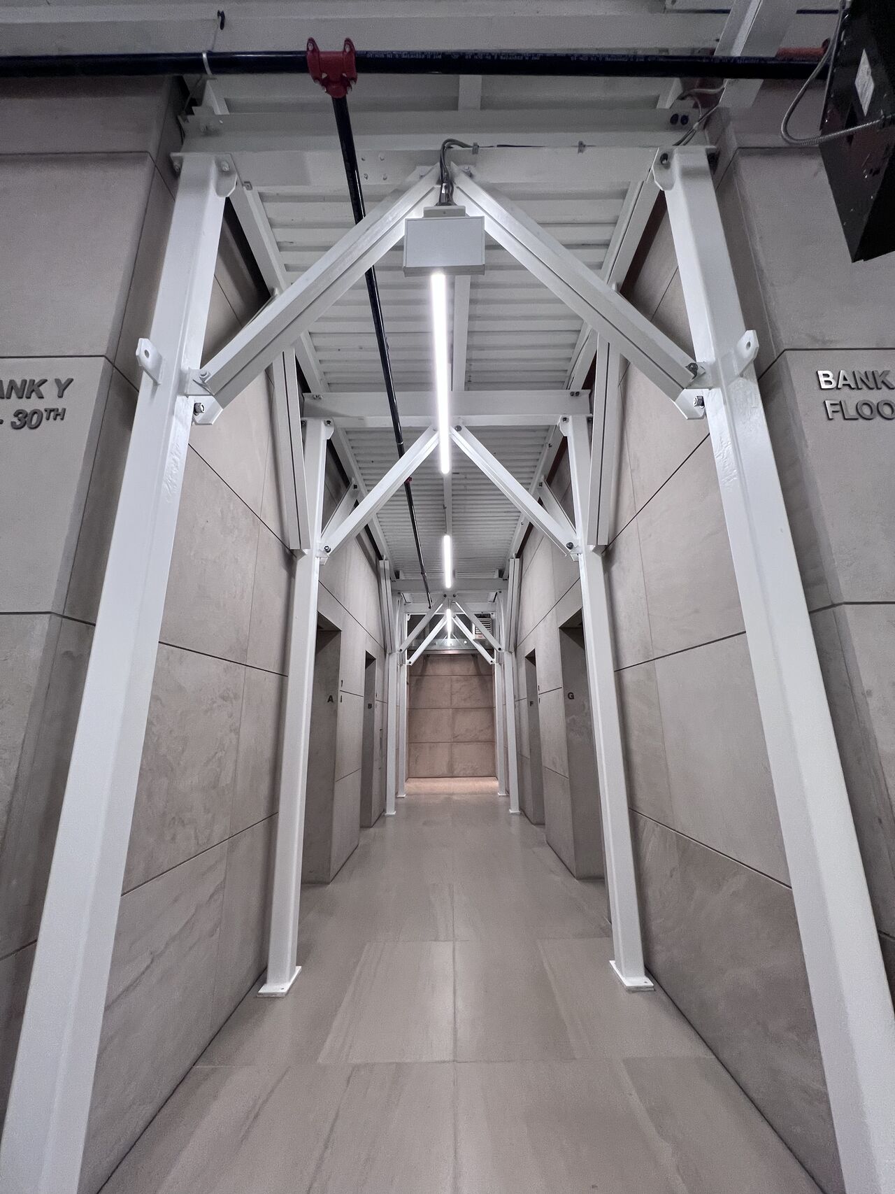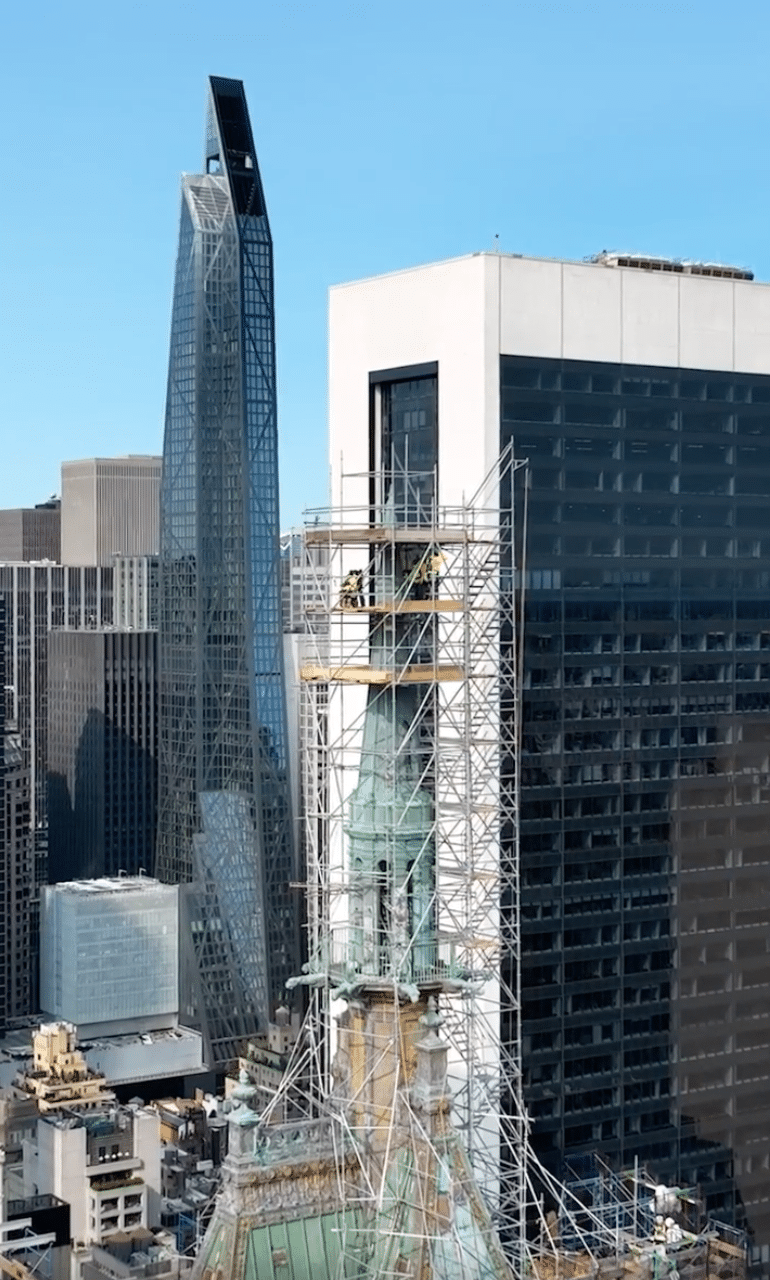 New modern sidewalk bridge up by Spring Scaffolding at Louis Vuitton in Manhattan